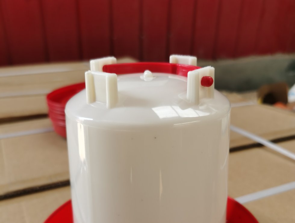 The feeding kettle for the chicks can hold 2.0L of water.